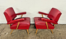 Vintage Mid-Century Modern Viking Artline Red Vinyl Armchairs