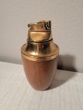 Vintage Wood & Brass Table Lighter / Mid Century Modern Design 6 Inches