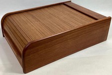 vintage MCM mid-century KALMAR Designs TEAK Tambour organizer CASSETTE BOX 11pix