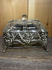 Beautiful Decorated Antique Dresser Box. Brass & Glass. Ornate. Early 1900's