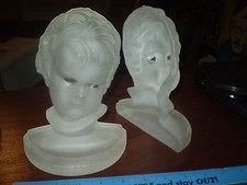 VINTAGE Antique FROSTED GLASS Cherub Bookends Set ART DECO