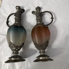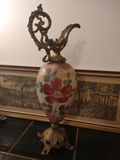 Antique Hand-Painted Glass And Brass Ewer