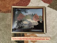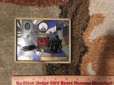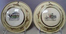 (2) Vintage Wall Plaques Bubble Glass w/ Tin Frame Antique Carriage & Automobile