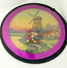 Vintage Antique Art Deco 3 Dimensional Convex Glass Windmill Dried flowers Small