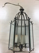 Antique Hall hanging lamp, with beveled glass, vintage, antique brass finish