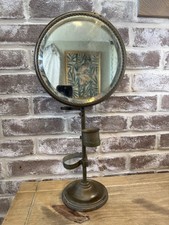 Antique Vintage Brass Shaving Mirror Beveled Glass Stand Brush Holder Arms