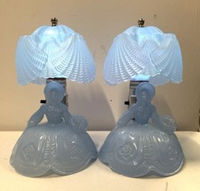 L.E. Smith Pair Small Antique 1930'S glass Southern Belle Lady Powered Blue Lamp