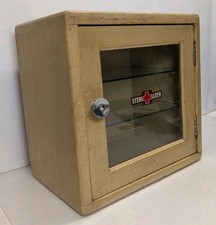 Vintage Antique Medical Cabinet Apothecary Wood Glass Display Case Medicine