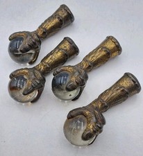 Vintage Antique Victorian Brass Glass Claw Style Furniture Feet Lot of 3