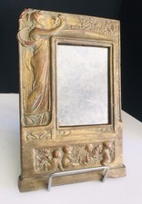 Antique Vintage French Nouveau Beveled Glass Mirror Brass Dragon Griffin Gryphon