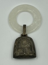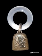 Antique Vintage Silver Plated Bell Baby Rattle with Teething Ring.