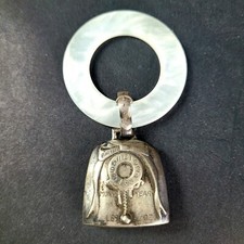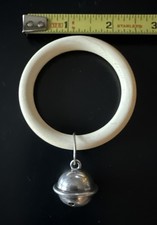 Vintage 1937 Baby Teething Toy Ring Rattler Mother Of Pearl Sterling Silver Bell
