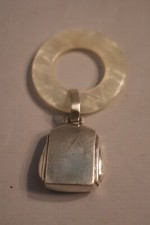 Vintage Sterling Silver Birth Record Baby Rattle Teething Ring ONE SIDE HAS MONO