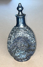 ANTIQUE SOLID SILVER FLOWER DESIGN OVERLAY PINCH WINE WHISKY BOTTLE DECANTER
