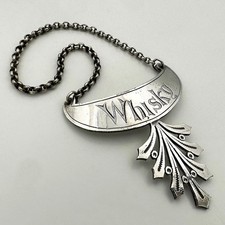 Vintage Sterling Silver Whiskey Bottle Decanter Tag Label