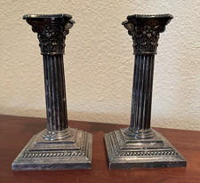 Antique English Silver Plate Column Candlesticks Fluted Architectural England