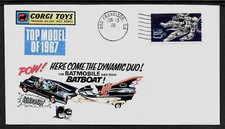 1960s Gorgi Toys Batman Batmobile Batboat featured on Collector's Envelope A931