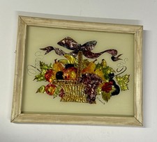 Vintage Folk Art Tinsel Foil Reverse Glass Painting Fruit Basket Framed Flaminio