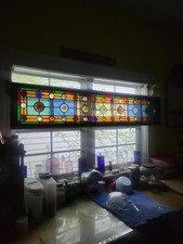 1 circa 1870 Antique American Stained Glass Transom Window, with 32 roundels