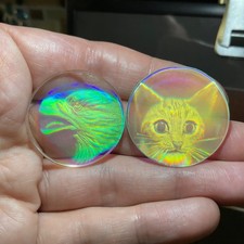 Hologram Glass Picture 1x1 Inch - Vintage Art - 2x Pieces! - Cats Eagle DCG