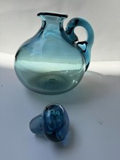 Vintage Ro Purser Handblown Glass Bottle –Turquoise Blue –1970s Early Art Glass