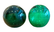 Vintage Blown Globe Art Glass 2 Piece Green Fishing Floats 3.5” Balls Diameter