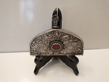 Antique Perfume Comb "The Hunt" Silver Plated w/ Glass Beads & Stand-Damage