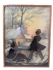 Antique Silhouette Bubble Glass Art Painting - Romantic Couple Sledding Scene