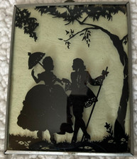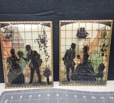 Pair Vintage Colonial Reverse Painted Glass Silhouette Minuet By Reliance T-1