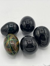 Lot Of 5 Vintage Glass Eggs 4 Black One Tribal Pattern