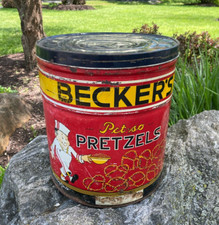 Vintage Becker's Pet-So Pretzel Pretzels Can Tin Baltimore MD Advertising