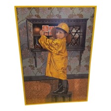 Nabisco 1994 Metal Advertising Poster National Biscuit Boy Yellow Rain Coat AAA