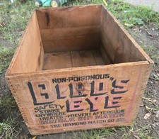 Lg. Antique Vintage Wood CRATE "BIRDS EYE" Diamond Match Co. Advertisement