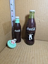 Coca-Cola Polar Bear Spinning Top Wind Up Bottle toy BK (Set of Two) VTG 1999
