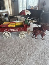 Vintage Cast Iron Coca-Cola 2 Team Horse Drawn Wagon w/ Coke Cases