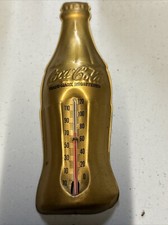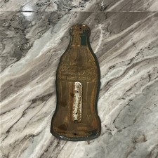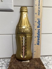 Vintage Coca Cola Bottle Thermometer Gold Metal Tin Coke 7 1/2" Advertising