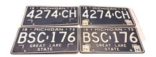 Lot of 4 Vintage Michigan License Plates 1973 Blue White Metal Passenger Plates