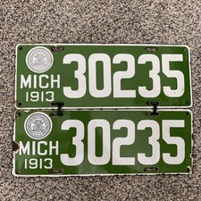 Beautiful condition porcelain antique michigan license plate pairs. Untouched.