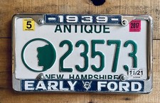 New Hampshire “Antique” Car Auto Vanity License Plate w/ 1939 Early Ford Frame