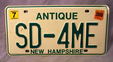 SD-4ME 2008 NEW HAMPSHIRE NH ANTIQUE VANITY PLATE SD-4ME LIVE FREE OR DIE