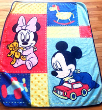 Disney Babies Mickey Minnie Vintage Blanket Color Block Airplanes Toys 1990s