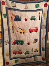 90s Vintage Quilt Cars Toy Blanket City Trucks Boys LARGE Fire Engine Colorful