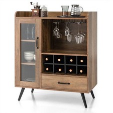 Mid-Century Modern Sideboard Wood Buffet Cabinet Wine Rack and Glass Storage