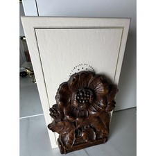 Vintage Carved Wood Rose Floral Bookend Metal Base Dark Brown Single