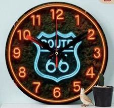 Route 66 Car Auto Sign, Gas Pump Globe Advertising 10" Clock GARAGE MAN CAVE