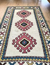 Turkish Vintage Small Rug Handmade Wool Bohemian Bath Mat Rug 1,7 x 3,7 ft
