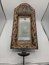 Vtg Lacquered Metal Chinoiserie Wall Mirror Sconce 21.5 Inches X 8 Inches