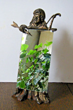 Antique Victorian Table Top Beveled Mirror Free Standing Cast Patina Baby Face