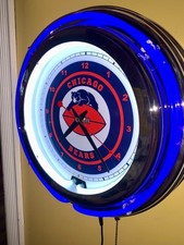 Chicago Bears Football Throwback Bar Man Cave Neon Clock Advertising Sign