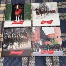 1992 Budweiser King of Beers Vintage Clydesdale Holiday Beer Set of 4 Clean